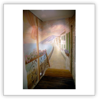 - Художественная роспись интерьера (рисунки на стенах): роспись стен, потолков и мебели, фреска (affresco), картинки обманки (стена рисунок).
